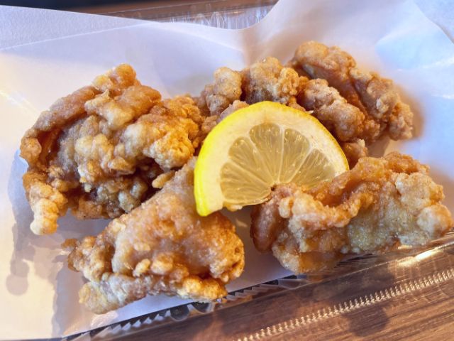 揚げたて熱々!カリッとした黄金色の衣をまとったジューシーな唐揚げです。一口食べれば、肉汁が溢れ出し、口の中に旨味が広がります。ご飯のお供はもちろん、お酒のおつまみにもピッタリです!冷めても美味しいので、お弁当のおかずにもお勧めです。10個入りは1,000円(税込)です。